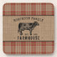 Family Farmhouse Rustic Cow Red Plaid Burlap Coaster