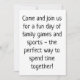 Family Games Day Slogan Large Text Any Colour. Invite your friends and family to a fun team games and sports party with this simple fully customisable typography design. With a bold slogan on the front and details on the back. Easy to personalise as required with your own words. In black and white, text and backgrounds can aslo be changed to any colours of your choice via the Edit further option, where you can also change the text styles and sizes if you so wish.
