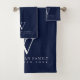 Elegant Designer Family Home Monogram Navy Blue Bath Towel Set. Shown in navy with white text. Personalise with your own text, fonts and colours. Visit our Zazzle store, Life on Memory Lane, to view our growing range of gifts for all occasions and please contact us if you require any assistance.