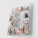 Easily create your own personalized silver metallic modern style wall clock with your custom photos. The design also features a beautiful handwritten script quote: "Family is everything". For best results, crop the images to square - with the focus point in the center - before uploading.