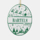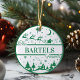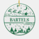 Add a fun and classic touch to your tree this year with a personalised ornament that can be passed down for generations. The traditional green and white design features a cosy home surrounded by pine trees while Santa and his reindeer fly overhead in the night sky. Makes a great gift that can be passed down as a family keepsake for years to come!