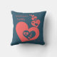 Family Keepsake Throw Pillow, Slate Blue & Rose Pink Cutout Hearts on Slate Blue Pillow, Personalise with Family Name and Anniversary Year; Cute Wedding, Anniversary or Housewarming Gift