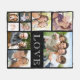 A photo collage keepsake blanket that your family will treasure and enjoy for years. You can personalise with nine photos of the family and pets. "LOVE" is written in open white typography against a black background.