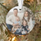 Family Love Script Photo Heart Name Custom Colour Acrylic Ornament. Celebrate the joy of togetherness with this personalised Christmas ornament featuring one or two full-bleed photos (one on each side) to showcase your most cherished family memories. The modern script title FAMILY, accented with a graceful heart swash, adds warmth and meaning to your holiday keepsake. Customise with your family name and year in your choice of colour to show on your picture and to create a one-of-a-kind ornament that reflects your unique style (shown in white). Perfect for hanging on your Christmas tree, giving as a heartfelt gift or treasuring as an annual tradition, this ornament is a beautiful reminder of love and connection during the holiday season. ASSISTANCE: For help with design modification or transferring the design to another product, contact the designer BEFORE ORDERING via the Zazzle Chat MESSAGE tab or email makeitaboutyoustore@gmail.com.