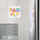 FAMILY magnet featuring my original colour block letters. Customise the background colour ... looks great on black, too!