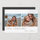 Send holiday greetings to friends and family in chic style with our elegant photo cards. Designed to accommodate two of your favorite photos arranged side by side, this chic minimalist card features your family name in stately charcoal gray lettering, with "Peace on Earth" in ornate classic script alongside the year. A pale snowflake silhouette at the corner completes this modern, minimal design.