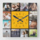Customise this cute wall clock with your own memories and family photos. Yellow grunge texture. Modern font text. Add your own family photos and customise text.