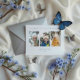 This design features a minimalist and balanced composition based on a collage of three customizable photos, accompanied by simple dark blue typography that adds serenity and a clean, timeless style. The clear and organized layout allows the images to stand out, creating a visually meaningful and harmonious keepsake.