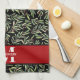 Your initial and last name personalise this kitchen towel with a branches, berries and greenery pattern on black. Perfect for your home decor or give as a gift. MATCHING items in our store.