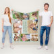 An elegant family photo collage sage green fleece blanket to display your favourite pictures. Add 8 photos of parents, children, grandparents, pets, etc., and your last and first names or other text. The colours of the background and text can be changed by editing in the design tool.