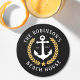 Family Name Beach House Anchor Gold Laurel Black Round Paper Coaster