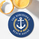 Family Name Beach House Anchor Gold Laurel Navy Round Paper Coaster