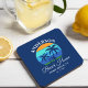 Family Name Beach House Sun Palm Trees Blue Coaster
