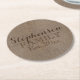 Get the look and feel of a vintage antique potato or coffee sack without the rough texture. Personalised gift with the family name and has an old-time print in shades of brown.