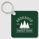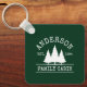 Family Name Cabin Forest Green with Pine Trees Keychain