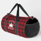 Family Name Cabin Red Buffalo Plaid with Pine Trees Duffle Bag