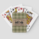 Family Name Cabin Trees Sage Green Plaid Burlap Playing Cards