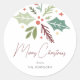 Family Name Merry Christmas Berry Foliage Script Classic Round Sticker