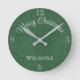 Family Name Merry Christmas Green Denim Print 8-in Round Clock