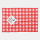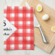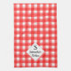 Family Name Monogram Custom Red White Retro Plaid Tea Towel