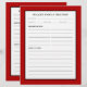 Double-sided lined recipe page designed to coordinate with a matching 3-ring recipe cookbook binder. A simple minimal design in a modern red, black and white colour palette with custom family name, recipe, serving information, prep time, cook time, ingredients and directions. All of the information you need for your family recipes on the front and back. Designed as a template and shown with your family name's recipes, you can customise using the fields provided or use the "message" button to contact the designer for help.