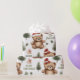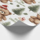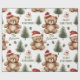 "Feel the embrace of winter with our delightful wrapping paper, featuring teddy bears in red dresses amidst a winter wonderland."