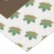 Adorn your table for Thanksgiving with this family name table runner. The background pattern features brown and green maple leaves arranged in a diagonal pattern. The centre of the table runner features a long dark brown rectangle giving a solid background for your family name. All text can easily be personalised to suit your needs.