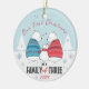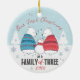 Personalise this cute family of polar bears & snowflakes "Our First Christmas as a Family of Three" round ceramic ornament with the year printed on both sides - the perfect custom keepsake gift for new parents to cherish year after year while trimming the Christmas tree together as the family grows! Happy Holidays from Fig and Lily Studios ♥