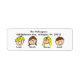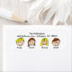 Customisable stick figure family address labels featuring a dad with blonde hair, mum with brown hair, a blonde haired girl, and a boy with a brown hair! You can customise this item with names and an address!