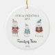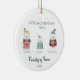The Family of Three First Christmas Bear Ornament, with cute watecolour bears, is an ideal decoration for your Christmas tree, adding festive charm to the season. The ornament is ideal as a keepsake, symbolising the joy of the baby's first Christmas and the happiness shared by the entire family. Note, the names and year can be customised. For further customisation, please click the "Edit Using Design Tools" link and use the design tool to modify this template.