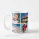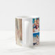 Remember your family vacation with this modern collage coffee mug with space for five of your favourite trip photos. At the bottom there is a blue box for your custom text, such as the year of your vacation, your family name, and/or your trip destination. This beautiful coffee mug will be a treasured keepsake for years to come.