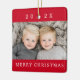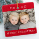 Ceramic ornament featuring your custom photo, the current year and customisable text "Merry Christmas"