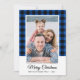 Family Photo Blue Buffalo Plaid Merry Christmas Card