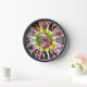 This fun, colourful tie-dyed photo collage clock features 13 of your favourite family photographs in a circle shape, with one picture in the centre and 12 around it, coinciding with the clock hours. Each photo has a border of black, and there are also black numbers with little sun icons between them. The background is made of retro tiedye with fading swirls of purple, pink and red at the edges slowly changing to yellow and orange near the centre. Use the easy templates to add your pictures. All photos will automatically fill the frames. (The sample photos shown are all square). Please note that parts of your photos will likely be cropped to create the shapes. See more fun collages in our store: https://www.zazzle.com/store/picturecollage