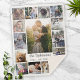 Snuggle up with your family or wedding memories with this beautiful photo collage sherpa blanket. This design includes one large central vertical photo, along with 2 smaller vertical photos and 12 square Instagram-style pictures. Add your name in grey. The words "Love - Happiness" can also be changed or left as-is. The simple templates make it easy to personalise. Choose your own blanket size. "Customise further" to make more detailed changes.