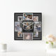 Family Photo Collage 9 Pics Name Black Striped Mod Square Wall Clock