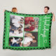 Personalised Family Photo Collage Holiday Christmas Fleece Blanket. black green buffalo plaid blanket with script word Holidays and a heart. Holidays are for being together or edit it to say something else that's what is special for your family at holiday time. Family name is also featured under 4 favourite family photos on this keepsake holiday family photo blanket making it a perfect gift for anyone in your family.