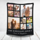 Celebrate your family or wedding memories with this beautiful photo collage fleece blanket! This design includes two large square photos and 8 small square pictures. Add your Family name. The words "Love and Happiness" can also be changed!