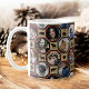 Enjoy Christmas and the entire winter season with this beautiful personalised photo collage mug. The design has the look of a rustic country quilt. Each photo includes a red and black buffalo plaid border. The squares between photos have a printed burlap effect with silhouettes of moose, deer, bears, buffalo, snowflakes, pines, cabins, and leaves. In total, up to 22 of your photographs tile across the mug (photos 1, 2, 21, and 22 might be cropped some on the sides). Use the easy templates to upload your pictures and they will automatically fill the octagonal quilt shapes. Find more fun photo collage gifts in our store https://www.zazzle.com/store/picturecollage