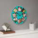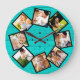 Family Photo Collage Rustic Farmhouse Teal Large Clock