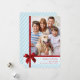 FAMILY PHOTO cute wrapped up red ribbon bow blue Holiday Card