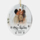 Family Photo Merry Christmas Script Snowflakes Ceramic Ornament