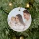 Family Photo New Parents Green Merry Christmas Ceramic Ornament