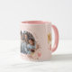 Personalise and add your own family photo. An arch frame decorated with pampas grass and blush pink florals. Elegant rose gold coloured background. Add your family name and year established.