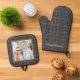 Family Photo Personalised Grey Plaid Holiday Oven Mitt & Pot Holder Set