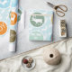 Modern Family Photo on Bright Colourful Merry and Bright Reindeer Wrapping Paper for the Holidays