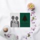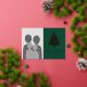 Destei's original silhouette design of a Christmas tree shape with a star on top. The background colour is green and there are three personalizable text areas. Next to the design there is a custom photo template.