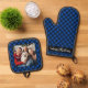 Family PhotoPersonalized Christmas Blue Plaid Oven Mitt & Pot Holder Set