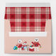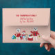 A cute pink and red Holiday envelope with a polar bear family .