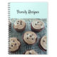 A great notebook for all the favourite family recipes. A background with soft aqua featuring cupcakes with chocolate chips. The words 'family recipes' can be changed as desired.